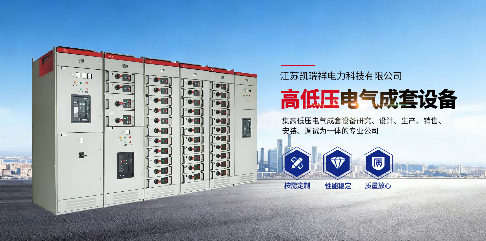 公司擁有數控沖床、數控剪板機、數控折彎機、自動化噴涂設備、高低壓檢測設備。公司全面貫徹執行標準管理體系,低壓系列產品取得了 強制性認證證書,中高壓系列產品取得 型式試驗報告。在電氣行業快速發展的 ,因市場的需要,現公司又投資創辦了江蘇凱瑞祥電力工程有限公司,主要經營:高低壓開關柜、電容柜、環網柜、儀表等,公司將更好更全面的服務好廣大客戶。